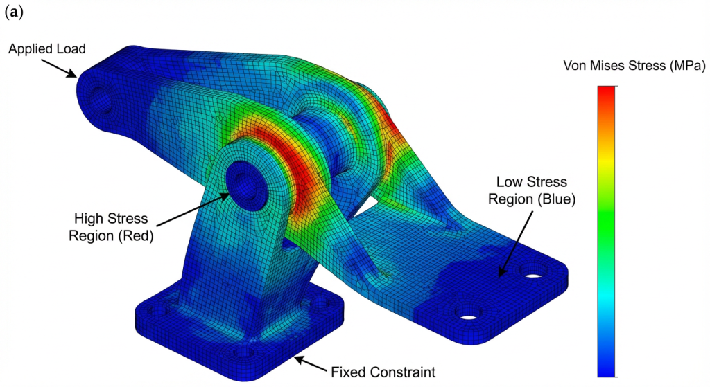 分析: 通过网格化产品,采用3D模拟,以最小代价,最快速度,找到产品受力情况下,承受最大应力的位置。并通过优化产品设计,重复模拟,快速迭代。