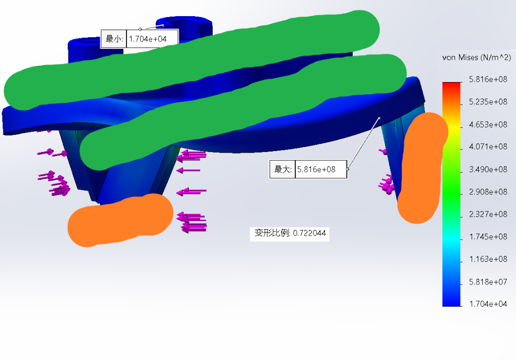 解决方案: 调整产品受力位置的受力传导方向,成功增加零部件25%的受力能力,成功解决产品在应用过程中开裂的问题。